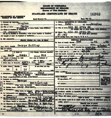 This is the origin of the Heffley family in America. It started with George Henry, age 22 of Switzerland, marring Lucy Gordon, age 19 of Pennsylvania. They were married in 1846, in Sumerset, Ohio.