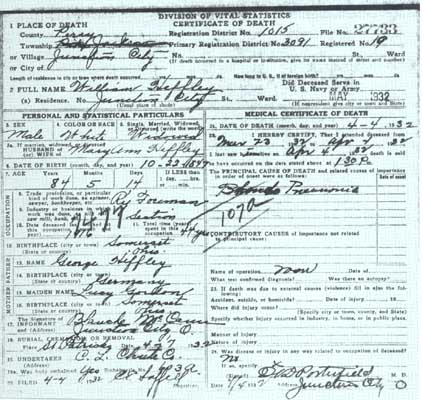 I have included copies below of the death certificate for George Henry and some of his sons. I have included aditional information relative to who the parents were and from where: