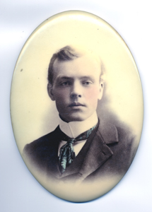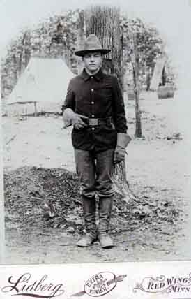 "Born May 17, 1879 in a log house on old homestead 5 miles S.W. of Stanton. Was one of two puples to be the first from District 19 to attend Stanton High School. On May 10, 1898, volunteered in war against Spain in Troop K 3rd U.S. Vol. Cav. After, returned home and helped on farm. One winter to Seminary college at Red Wing, Minn. The next winter started at Agri School in the University at Lincoln. Was stricken with Diptheria and Scarlet fever which caused me to abandon school education."