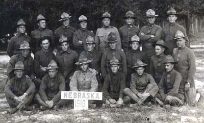 The Troop picture below is of the October 20, 1916, Nebraska rifle team sent to the national competition at Jacksonville, Flordia. At that time, they were part of the Nebraska Fourth Regiment National Guard stationed at Camp Llamo Grande, Texas.The names listed below were taken from a newspaper article published in the Omaha World-Herald dated October 14, 1916, and are not captioned on the picture.