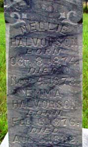 14. Halvorson, Nellie--------b.October 8, 1878-------d.November 14, 1878------age 4 years