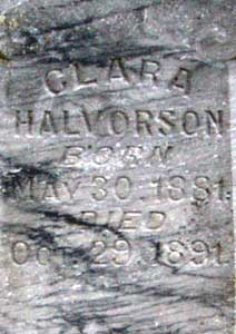 11. Halvorson, Clara---------b.May 30, 1881---------d.October 29, 1891-------age 10 years