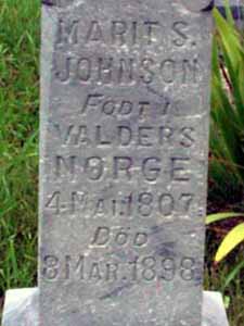 (Marit immigrated to Stanton County, Nebraska, in 1873, after her husband died, along with her son Ole and daughter Ragnild. She is burried in the Stanton County, Nebraska, "Norwegian Cemetery".)
