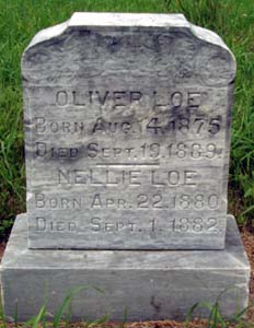25. Loe, Nellie---------------b.April 22, 1880---------d. September 1, 1882----age 2 years